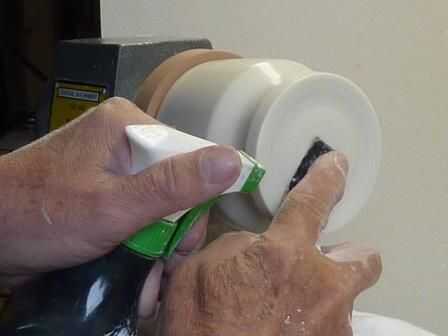 Otra vez usa una botella de spray de agua y papel de lija mojado seco y arena a través de todos los granos del 220 al 1200.
