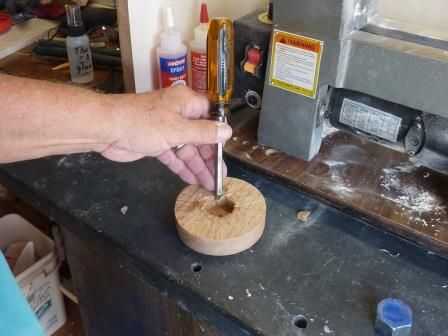 corte la parte superior con una sierra en la longitud deseada.Paso 1: Perforar el agujero Taladrar un agujero en la pieza de fondo lo suficientemente grande como para caber en el contenedor que utilizas en él. Utilicé grandes brocas y poner varios ag