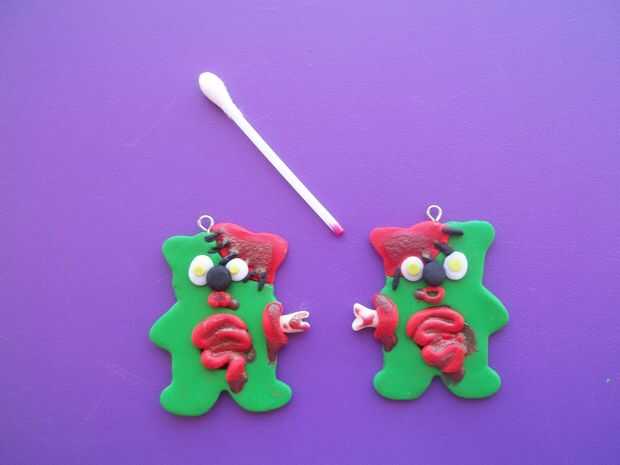 Una vez enfriado añada sus anillas y ganchos de pendiente y eso es todo! ¡ Disfrute de sus pendientes de la espeluznante zombear fresco!
