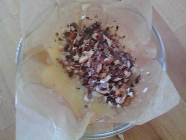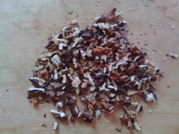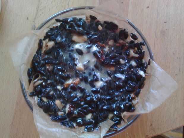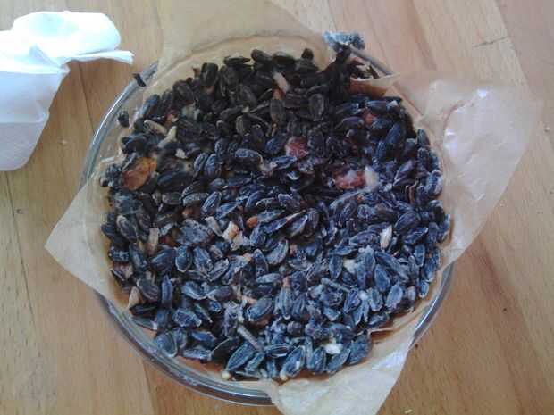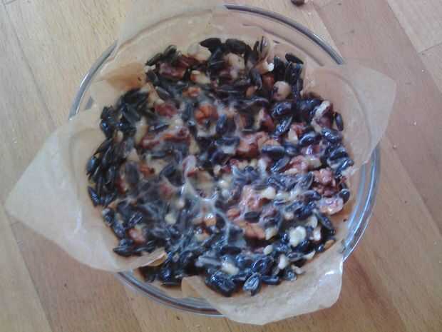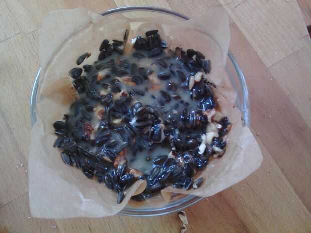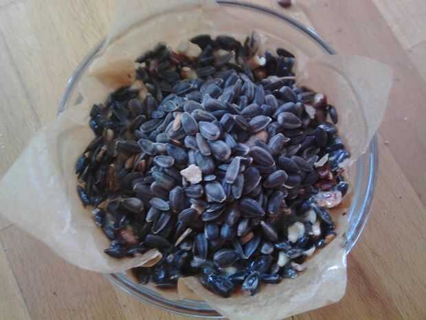 Triturar la nuez hasta un poco más. Poner en el recipiente. Mezclar y poner las semillas de girasol para el tazón de fuente también. Mezcla otra vez.