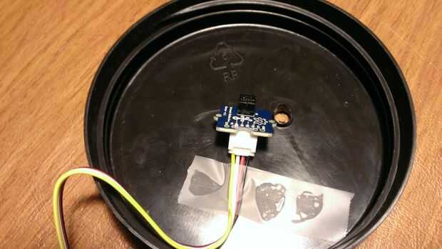 A continuación, vamos a configurar nuestro tarro de las galletas. Me perforó un pequeño orificio en la parte superior de mi tarro de las galletas y había roscada del conector del sensor de grove a través de él. Ahora, mi sensor infrarrojo se sentó en el interior de la tapa, mientras mi LinkIT uno y zumbador en el exterior.