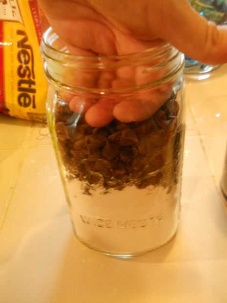 Esto es una manera fácil de dar amigos el regalo perfecto: Oatmeal Chocolate Chip Cookies en un tarro. Combinar los ingredientes secos y luego les digo como hacer el resto en su cocina en una hoja de papel de que amarrar en el jar. Mezcla feliz...Pas