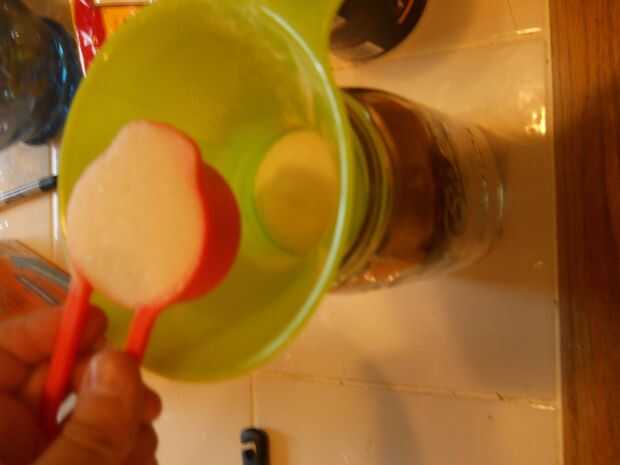 Por último, añadir el azúcar en la parte superior. Y coloque la tapa en la parte superior.