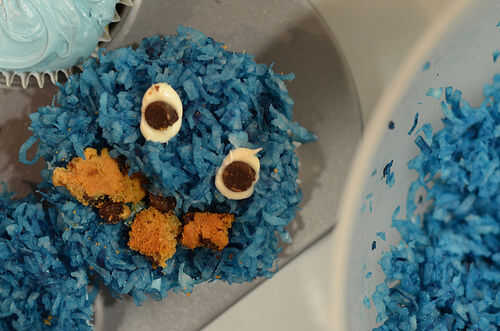 Cookie monster pastelitos (cupcakes) ha estado en mi mente desde que comenzamos el reto de la Magdalena. Me encanta cupcakes, pero esta vez, quería centrarse más en la decoración a gusto. Si tienes una receta de delicioso cupcake, no dude de utilizar aquí. Me rindió homenaje a Imperio cocina semi casero de Sandra Lee y de una caja.