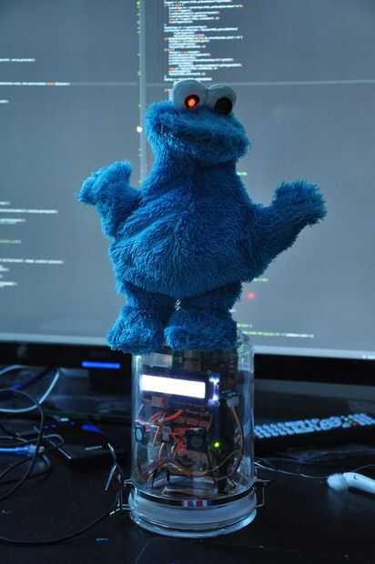 El Mounstro robótica fue creado por Pawel, Marcin y Anna durante IoT Intel hackathon en Nueva York en mayo de 2015. El monstruo de las galletas es un juguete interactivo para adolescentes y adultos que aman la tecnología: hablar a él en holgura, le invito a hacer cosas, que le contara un chiste - se convertirá en tu mejor amigo en el trabajo y en casa! De ahora en adelante tus amigos nunca perderá su mensaje en Slack - pregunte el monstruo de las galletas para entregar el mensaje a ellos y el juguete le indicará su mensaje en voz alta! Especificaciones técnicas: integración de parafina: en una escritura de chat flojo ' monstruo! dicen que...' y el juguete real dirá esas palabras fuera loudin el chat mismo pedir el monstruo para mover la cabeza, cuerpo, derecho o izquierdo a un ángulo específico y el juguete se mueve! Integración de Twitter: el monstruo de las galletas está en busca de un hashtag específico en tiempo real - #intelcookiemonster - y una vez que un tweet es publicado - el juguete lo lee loudToy sensores: sensor de proximidad ha sustituido uno de sus ojos por lo que cuando el usuario agita una mano delante de ella - el monstruo de las galletas está pidiendo una cookie! toque sensor en la boca - cuando una cookie (o un dedo) se coloca dentro de su boca - come! (o sólo pretende que diciendo 'om-nom-nom' masticar) Saber cuál ha sido tu monstruo hasta! Utilizar plataforma de Intel IoT análisis para leer la información sobre lo que el monstruo de las galletas/dijo últimamente. Tecnología utilizada: 1. Hardware: Servos, sensores de tacto (para el esqueleto), impresión 3D, sensor de proximidad, light2 LED. Software: texto a voz, construido un servidor y API de holgura en Node.js, utiliza Cylon.js para integrar todos los sensores, conectados a Twitter y empezó a leer de una corriente de tweets con el hashtag específico. Utiliza Intel XDK para development.3. Conectividad - plataforma Intel IoT Analytics para rastrear acciones y generar informes sobre las acciones del monstruo de las galletas en la nube.