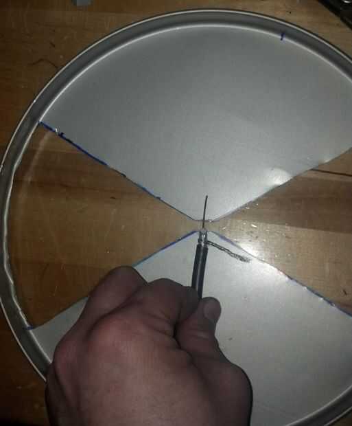 Hacer un soporte para sujetar el cable coaxial de desechos de la lata que usted recortar.