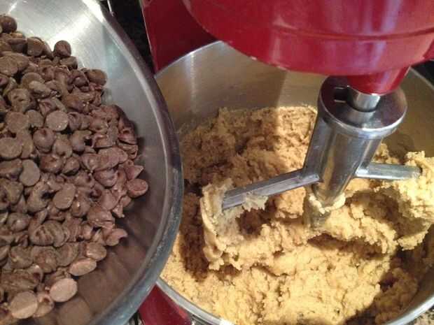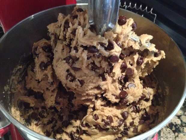 Se verá menos chocolate chips en su lote porque prefiero menos chocolates para la receta final. Tuve 4 tazas en estas fotos. Cuando el molde de la bola de galleta alrededor de la barra de caramelo, jab y conseguir torpes, así que siento que la relación sería mejor si hubiera menos chocolates. (Que yo he modificado mi receta). Es muy sencillo! Sólo tienes que seguir las instrucciones en el paso de la receta y tendrás una masa para galletas grandes!