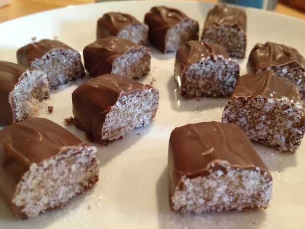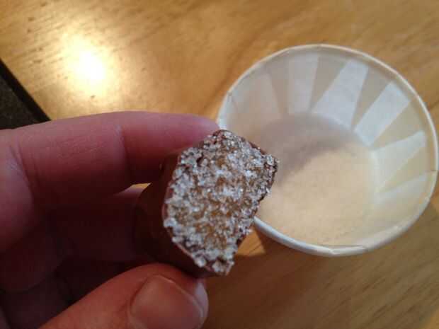 Toma un puñado de pasta, presione en su mano para aplanar lo presione un poco, tus dulces en ella y construirlo. Una vez cubierto, puede rodar en la mano como play doh para asegurarse de que está completamente cubierto. Luego espolvorea hornear sal, mar y comer! ¡ Disfrute!