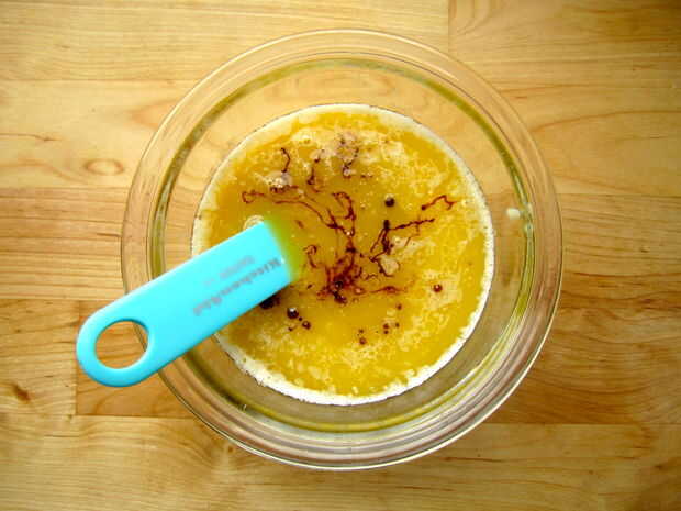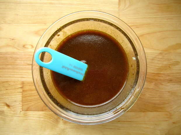 Vierta todos los ingredientes húmedos en un bol pequeño y mezcle bien hasta que la melaza se disuelve y ya no es clumpy. Esto podría tomar un minuto o dos si la mantequilla derretida se ha enfriado un poco.