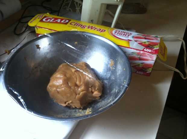Utilice una espátula de goma para más mezcla de la masa. Masajear la masa con la espátula hasta puede formar una bola. Refrigeración no es necesaria para estas cookies; sin embargo, yo mío había cubierto con abrigo de saran y había enfriada la masa en el refrigerador durante 30 minutos.