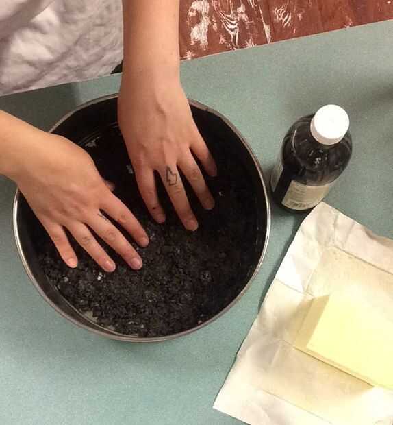 He utilizado las galletas tipo Oreo, puede utilizar marca de galletas Oreo o cualquier otra galleta su panadería pequeños deseos del corazón. Usé unas 22 galletas para mi base, uso menos o más, dependiendo de lo grueso o fino como su corteza al ser. Sus cookies para arriba, si no tienes un procesador de alimentos, es todo lo bueno! Poner tus galletas en una bolsa de plástico y aplaste em' usando el fondo de un vaso grueso inferior, presione el vaso las galletas y eres bueno para ir).