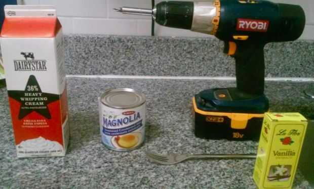 Una batidora eléctrica (o como usé un taladro y tenedor/batidor)