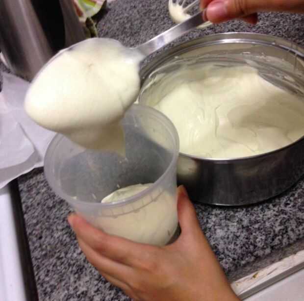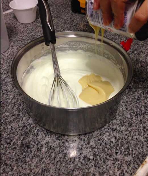 OK, ahora que su crema espesa es la consistencia correcta pop abrir su lata de leche condensada y añadir a la mezcla de crema pesada. Ahora usted también puede Agregar 1 cuchara grande de extracto de vainilla. A la mezcla a velocidad media, tardará aproximadamente 5-10 minutos. Una vez más, la mezcla del helado debe ser esponjosa y cremosa. Una vez que su helado es perfecto entonces agregar en el stir ins, si usted lo desea y sólo mezclarlas en el helado. A continuación puede transferir su helado en un recipiente que tenga tapa. Una tapa es necesaria para evitar que el helado de hielo y para preservar su bondad cremosa. Coloque el helado en el congelador durante 8-12 horas.