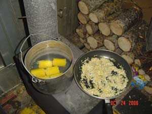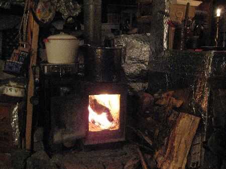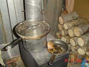 Algunos de los que ya fuimos a todos eso problemas para conseguir algunos buenos carbones va pensar natural lo siguiente a hacer es cocinar algo en él. Yo soy uno de ellos. Tengo también una razón adicional. Esta es mi estufa solamente, calienta mi casa. Vivo en el interior de Alaska y durante todo el invierno tengo que mantener un fuego va 24 horas al día, siete días a la semana.