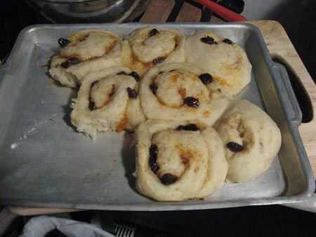 cubrir con mermelada de albaricoque, la canela y las pasas de uva,