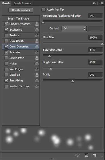 Desactive todas las casillas excepto la forma dinámica, dispersión, transferencia y alisar.