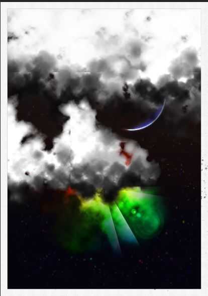 Las nubes no son todos blancas, así que creamos una nueva capa sobre la capa de nubes existente, oscurecer su cepillo y reducir su flujo a cerca de 40. luego pintar algunas nubes más cerca de la parte inferior de los ya existentes como las sombras. (Foto 2)