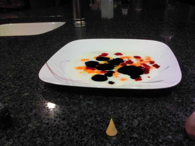 Esto es un experimento muy interesante con la leche, jabón ypocos colores. Añadir algunas gotas de colores comestibles en leche. Sumerja un bastoncillo de algodón en jabón y tocar este brote en el centro de la leche y ahora mira el video a ver que pa