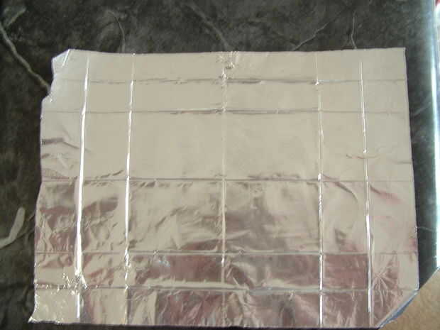 Del anterior paso cuatro filas y columnas fueron hechas. Tomar la columna de borde y doblar por la mitad. Tomar la fila de borde y doblar por la mitad. Repita hasta que cada arista ha sido doblado. Revelar el pedazo de papel de aluminio.
