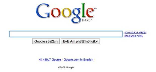 Ir a la Página principal de Google y escribe "google l33t" en la barra de búsqueda de google. Luego presione "Estoy Feeling Lucky". Todo en la página ha sido el cambio a una fuente con letras y números.