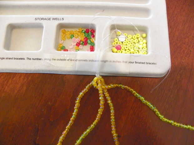 Instrucciones de "Cómo hacerlo" para un Pony Bead BraceletPaso 1: Tomar un carrete de cuerda en el color de su elección y relajarse lo suficiente para caber el tamaño de su muñeca.Dedicar algún espacio adicional atar unos nudos al final, cerca d