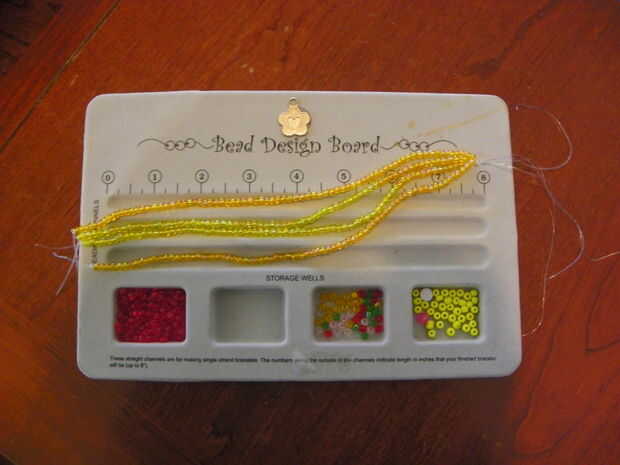 Llenan los otros 2 hilos de otro color y asegúrese de que cada filamento tiene la misma longitud. Después se llenan todos los 4 filamentos, atarlos juntos, al final de la TIED!!!!!! (Lamentablemente, yo no hice atar en el extremo derecho, así que presta atención al texto!!!)