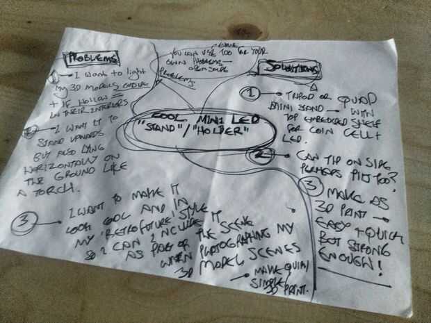 1. yo quería tener un soporte "quad" o "trípode" que contendría también firmemente la célula de la batería con la luz del LED.