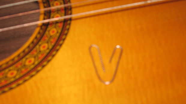 Un día estaba en clase de guitarra pero no tuve ningún pick tan siendo la persona de resorsful que soy he encontrado un clip de papel ya doblado en clase de forma de V y foto instantánea Shizam.