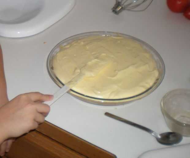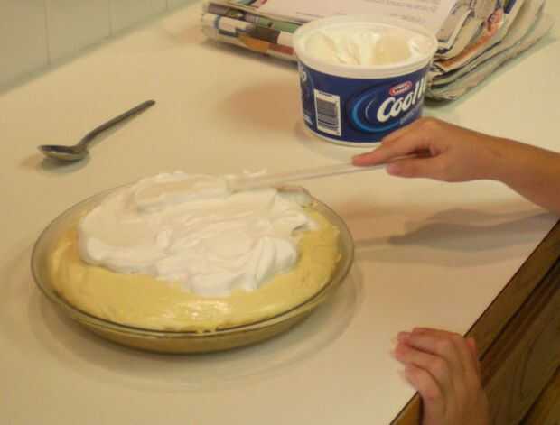 esta receta hace un pastel de 9 pulgadas.Ingredientes2 1/4 tazas de leche fría1 paquete (6 - tamaño de la porción) Jell-o Vanilla sabor de pudín instantáneo y relleno de la empanada1 horneada (paso 1 se ocupará de un crudo) tarta de 9 pulgadas2 pláta