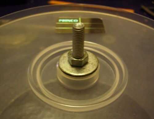 Fijar el perno en el centro del huso. trate de hacer esto es tan exacto como sea posible ya que si no el centro de la rueda no girará en él eje. Bloquear el tornillo con una arandela y una tuerca en el otro lado.