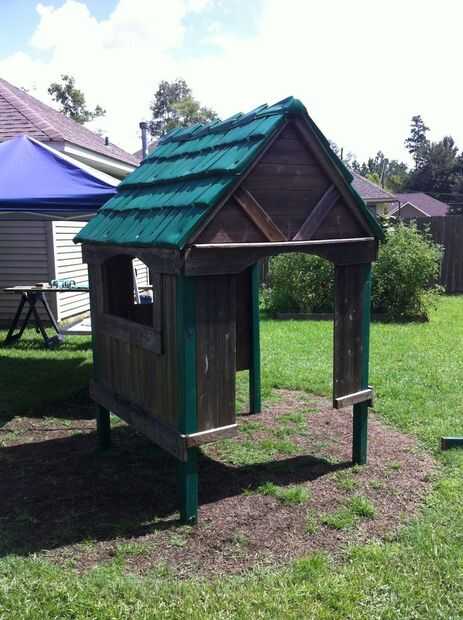 Cuenta de los 4 puestos principales ahora son más altos que los originales. He quitado estos puestos desde la cubierta principal de los columpios y había substituido los más cortos en el playhouse. La altura adicional era cerca de 18 pulgadas.