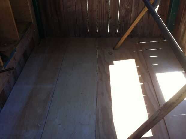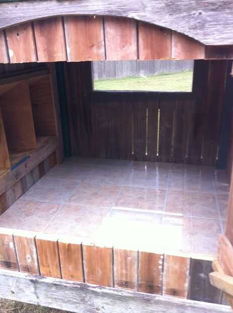Suelo - he utilizado tiras de 12 pulgadas de 5/8 madera contrachapada asi puedo eliminarlos más fácil para la limpieza. Compré algunos azulejos de vinilo baratos cáscara y del palillo de Home Depot y equipadas. Esto se ve realmente bien ahora. Estoy tratando de disfrutar lo bonita la coop es antes de pegue los pollos en ella. Es increíble cómo totalmente desagradable pueden hacer una cooperativa. Realmente he visto un impulso hacia los lados!