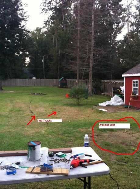 Una de las últimas piezas de la coop es colocar trineos a las piernas. Necesitaba mover el gallinero cerca de 70 pies a la zona donde será la carrera. Fui capaz de tirar con el tractor de césped, con la ayuda de mis más viejos hijos. Todavía no puedo creer este plan realmente trabajada!
