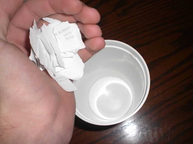 Para este paso usted necesitará el papel picado, la Copa y algo de agua para llenar la Copa. Les pedimos poner papel picado en la Copa e ir a llenarlo más de la mitad con agua.
