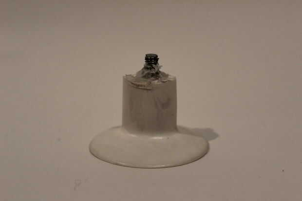 * puede que necesite recortar la ventosa con las tijeras como yo lo hice para que una pequeña porción del tornillo está saliendo de la parte superior de la taza de la succión.