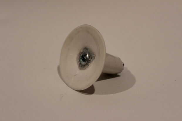 Cuidadosamente y perfore un orificio de aproximadamente el mismo tamaño que el tornillo a través de la parte inferior de la ventosa y sale por la parte superior.