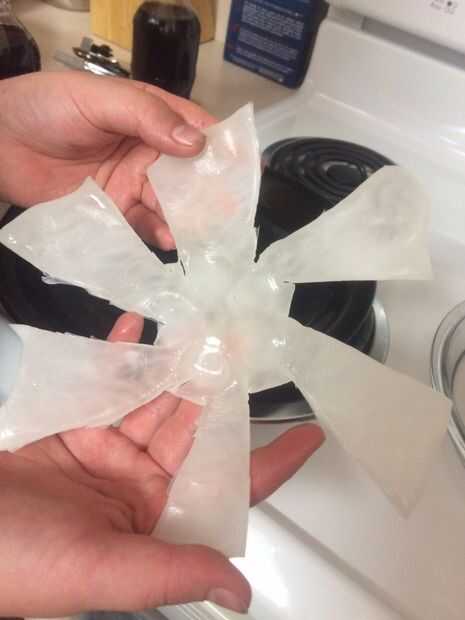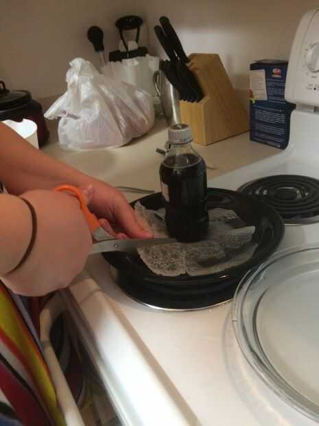 • Luego cuidadosamente con tijeras para cortar pequeñas porciones triangulares de su círculo de plástico. Evitar el corte en el centro donde la voluntad de su base es.
