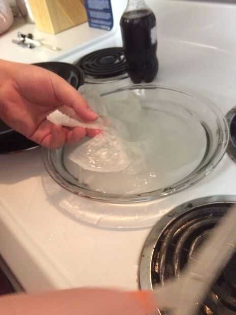 Calentar el plástico en tu plato de cristal y luego comenzar inmediatamente formar el plástico a los lados de la botella juntar las costuras.