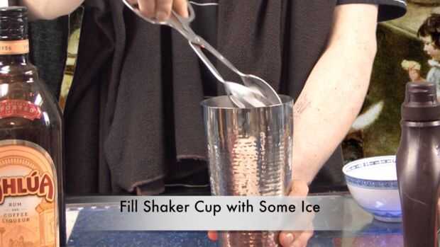 1) una copa coctelera con varios cubitos de hielo