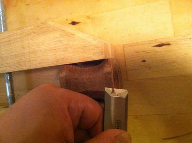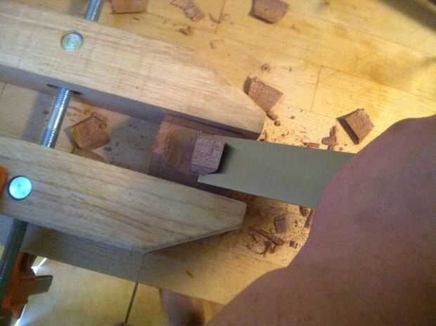 Para dar forma al octogonal, marca un camino corto en de las esquinas finas del bloque y pare las vieiras en la madera. Ahora los extremos octogonales realmente brillan, se sientan muy bien en las mordazas.