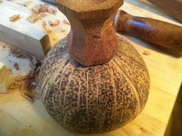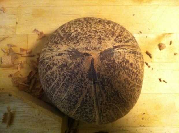 Si el coco tiene crestas prominentes que evitar sentarse correctamente en el agujero, usted puede pare los con su cincel demasiado. Tomé un poco de cada una de las tres líneas en mi tazón de fuente.