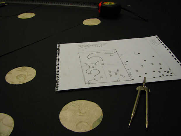 5. pegan cartulinas y traza su plan sobre cartón en escala real; uso compás para círculos de taza de café y pueden utilizar un hilo y un lápiz para dibujar curvas grandes.