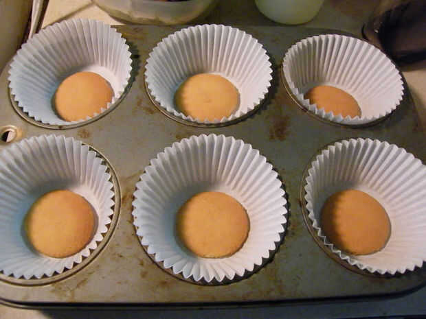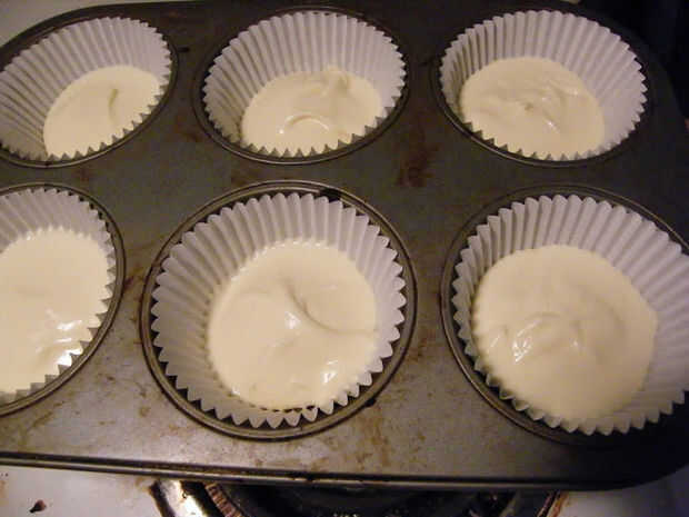 Verter la mezcla en los trazadores de líneas y hornear en la rejilla del centro durante 25 minutos (centro será no jiggle).