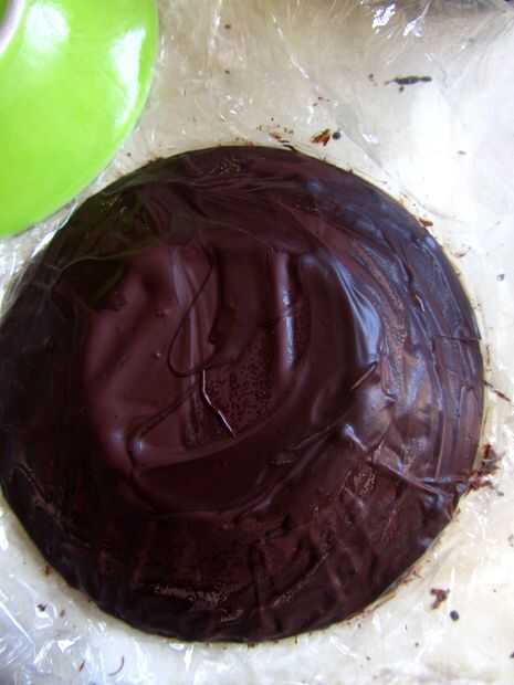 Para el platillo, desenvolver el film transparente de debajo y levante y el chocolate muy suavemente desde el platillo. Retire el film transparente de la parte superior del platillo chocolate. Coloque el plato en un plato para servir.
