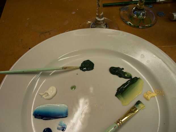Ahora se carga el plato con los colores que ha seleccionado para pintar las hojas. He escogido matorral (verde) y girasol (amarillo). Estos hacen una gran combinación para sus hojas.