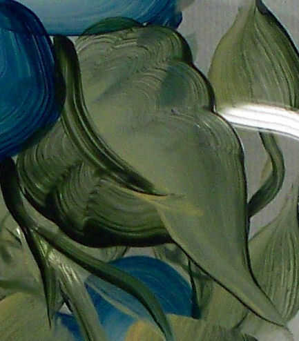 Inicio colocando dos o tres de las hojas onduladas alrededor de cada una de las flores completas.