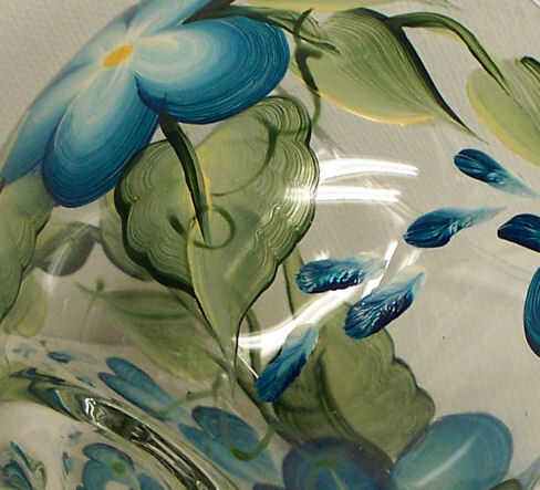 Utilice la tinta pintura de matorral para colocar curlycues en diferentes lugares a lo largo del vidrio pintado.