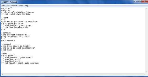 Si % pwd == alex goto correcto