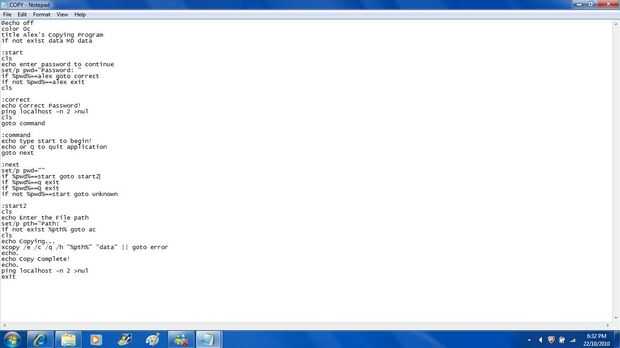 XCOPY/e/c/q/h "% de pth" "datos" || Goto error - intenta copiar el archivo de ruta de acceso o salidas de programa