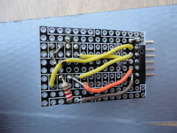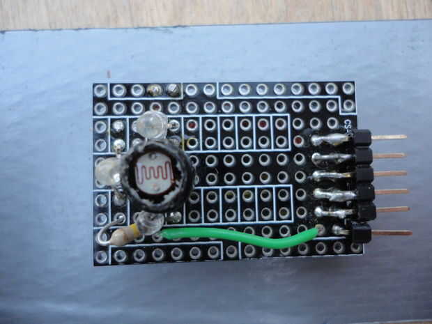 Trate de organizar los LEDs para que queden equidistantes de la fotocélula. Otro Consejo es probar y dejar que un poco de alambre conduce por encima de su proto-board para que suavemente se puede doblar para afinar las vigas. Desea que los LEDs para iluminar el área debajo de la fotocélula igualmente como usted puede manejar. (ver esquema)